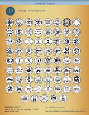 Hoffman Mint has a design staff that can take your company’s logo, artwork or text and create a custom token. You can customize one or both sides of the token.