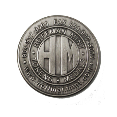 Hoffman Mint has a design staff that can take your company’s logo, artwork or text and create a custom token. You can customize one or both sides of the token.